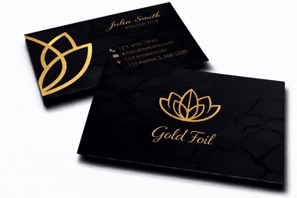 1000 Custom Shape Business Cards, Matt Laminated with Gold Foil Spot UV 400 GSM