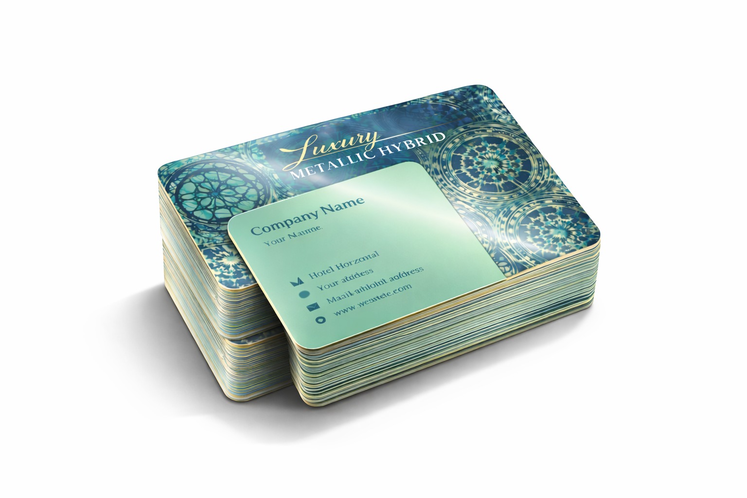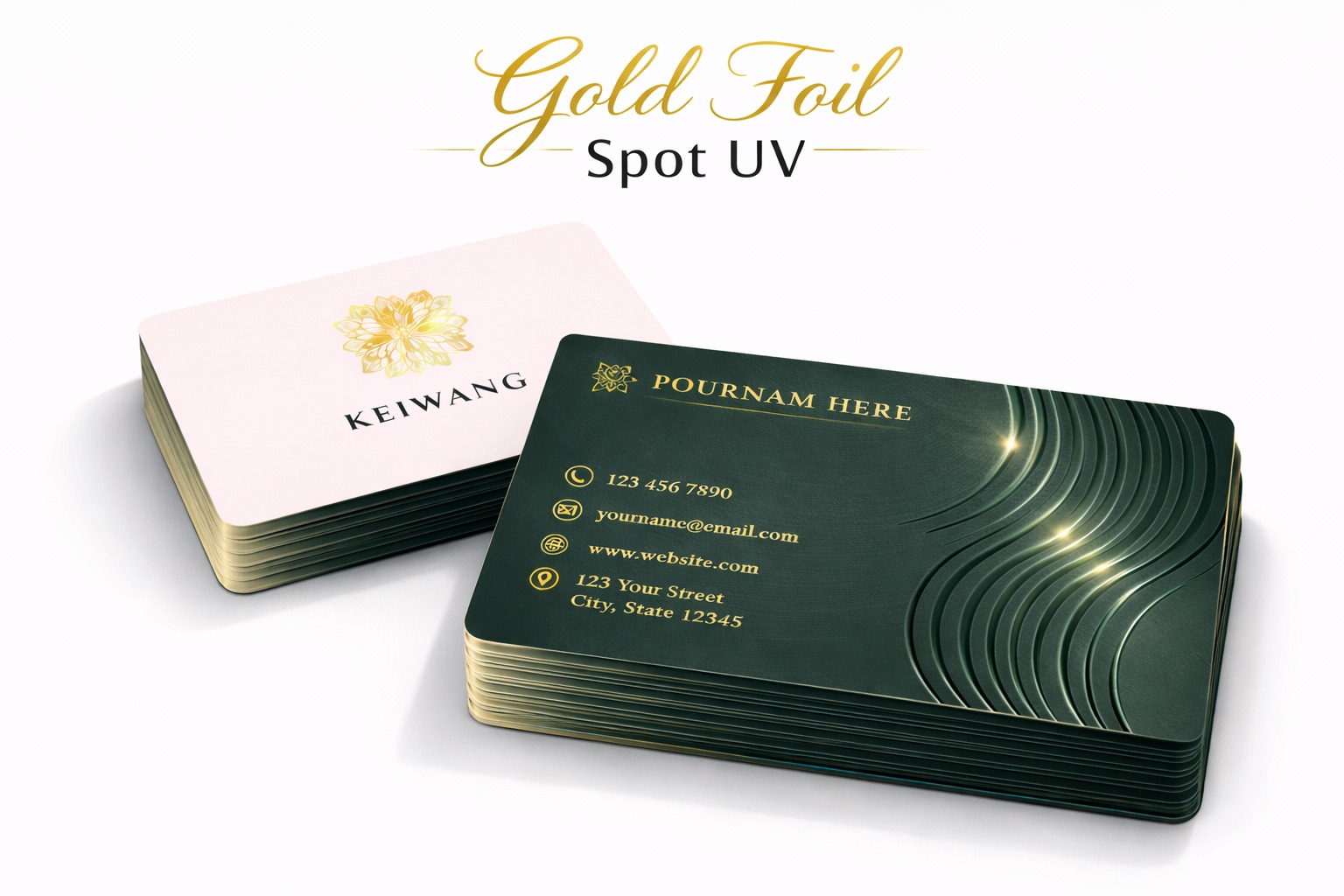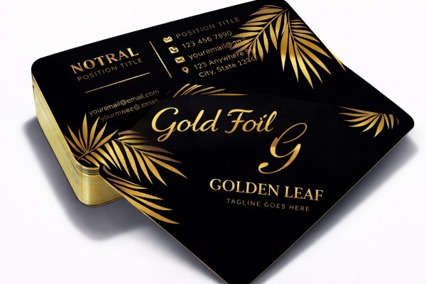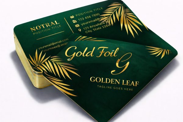 Premium 400gsm card with elegant rounded corners, finished with luxurious gold foil and a smooth matte lamination for a sophisticated, high-quality look and feel.